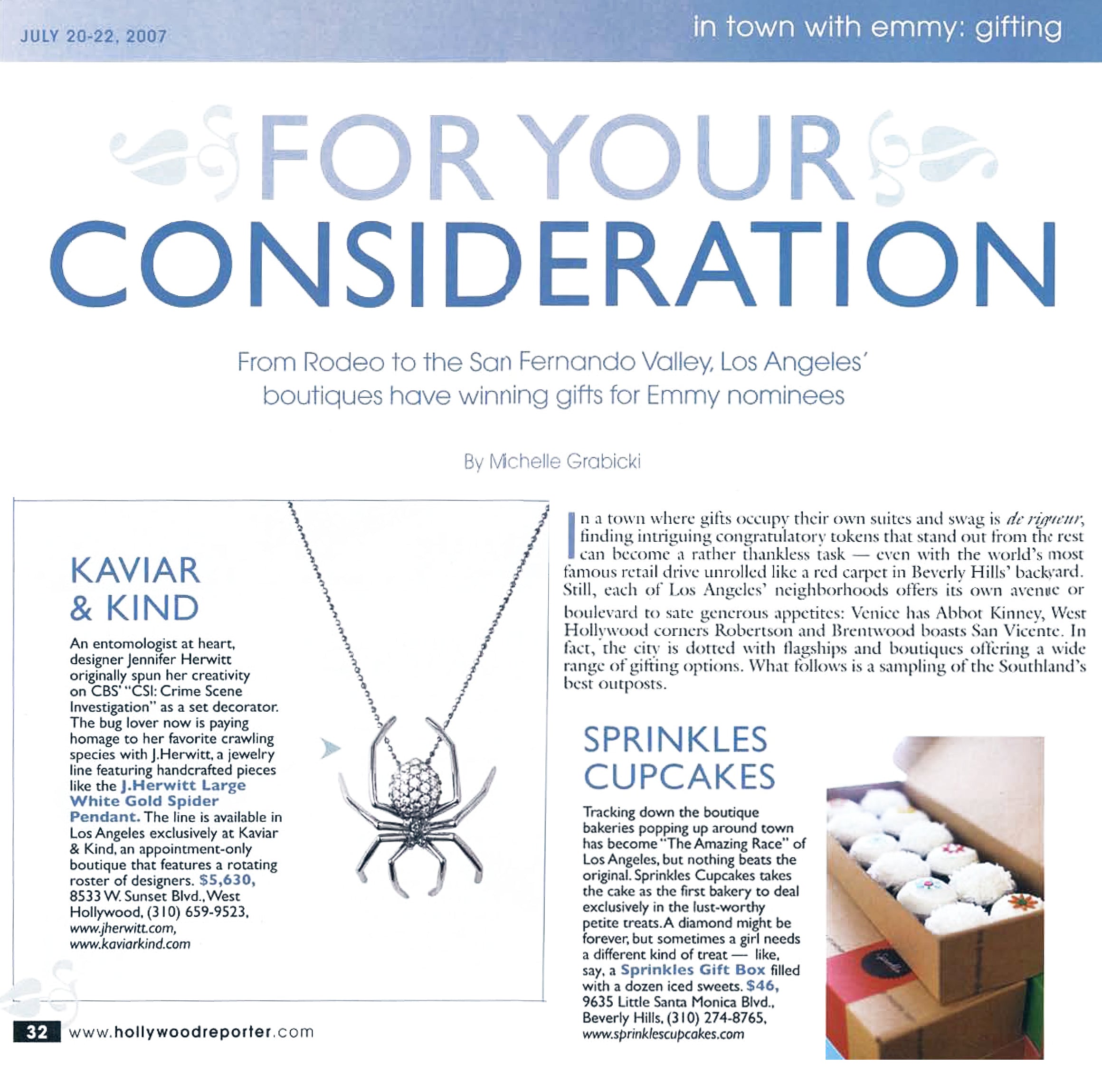 2007 Hollywood Reporter featured JHerwitt jewelry