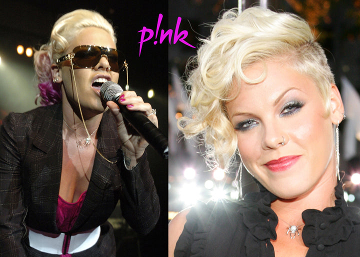 Singer P!nk wearing JHerwitt diamond spider necklace