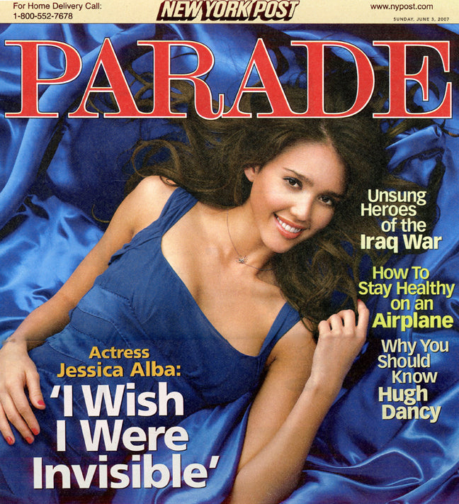 Jessica Alba wearing JHerwitt spider necklace in Parade magazine